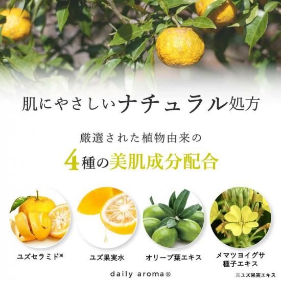 ●自然由来成分を使用しているため、稀に変色が生じる場合があります。また時期により香りや質感が若干異なる場合がありますが、品質には問題ありません。