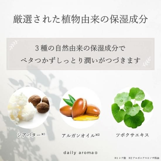 ●肌に異常が生じていないかよく注意して使用してください。●肌に合わない時、使用中に赤み、はれ、かゆみ、刺激、色抜け(白斑等)や黒ずみ等の異常が出た時、日光があたって同様の異常が出た時は使用を中止し、皮フ科医に相談してください。使い続けると症状が悪化することがあります。●肌に異常がある時は使用しないでください。●お子様や認知症の方等の誤食に注意してください。●高温多湿・日光のあたるところに保管しないでください。●自然由来成分を使用しているため時期により香りや質感が若干異なる場合がありますが、品質には問題ありません。