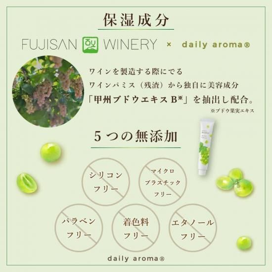 自然豊かなこのワイナリーで育った「甲州ブドウ」からワインを製造する際にでるワインパミス(残渣)から独自に美容成分「甲州ブドウエキス※」を抽出配合。手指のうるおいをしっとりキープします。