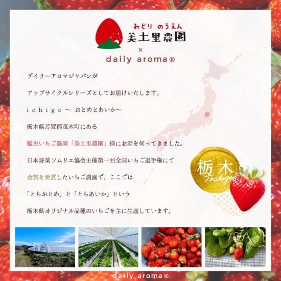 栃木県芳賀郡茂木町にある観光いちご農園「美土里農園」。廃棄になってしまういちごから独自に美容成分「栃木イチゴ果実エキス※2」を抽出配合。