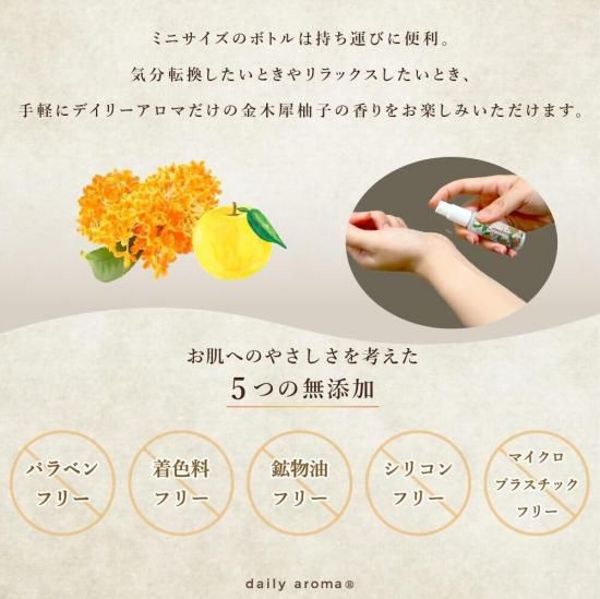 ミニサイズのボトルは持ち運びに便利なので、気分転換したいときやリラックスしたいとき、手軽に香りをお楽しみいただけます。