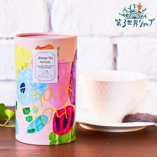 アールグレイティーは山本 頼子さんの「Thank you」のアートワークがデザインされたパッケージ。