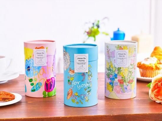 お花がデザインされた紅茶BOXは、母の日やお誕生日の贈り物など、お花がわりのギフトとしてもおすすめです。アートパッケージの紙筒は飾ったり、小物入れなど、飲み終わったあとも、ご利用いただけます。