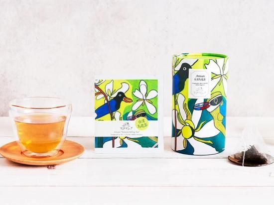 台湾烏龍茶のために書き下ろされたアートワークで、台湾に生息する“ヤイロチョウ”と“ヤマムスメ”という鳥が描かれています。
