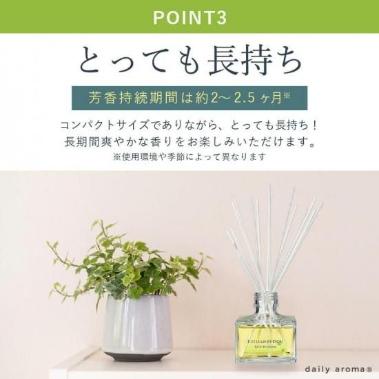 芳香持続期間は約2〜2.5ヶ月(使用環境や季節によって異なります)。