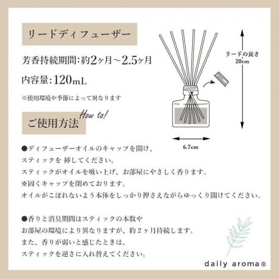 ●オイルはリードディフューザー専用です。他の用途には使用しないでください。